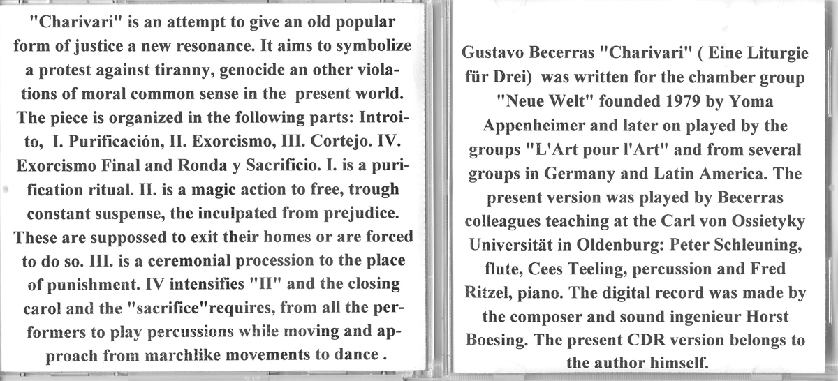 Die folgenden theoretischen Abhandlungen von Gustavo Becerra-Schmidt können Sie jetzt oder in Kürze in einer deutschen Übersetzung von Insa Oertel als pdf-Datei herunter laden. Soweit sie in "Revista Musical Chilena" (RMCH) erschienen sind, sind sie mit der online-Publikation dieser Zeitschrift verlinkt.